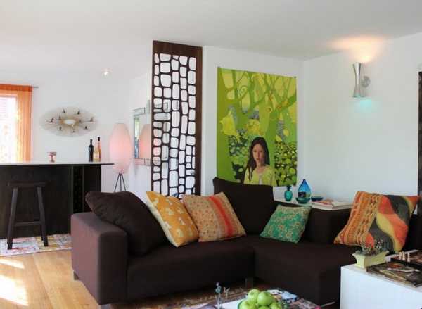 - Внести в интерьер яркость и оригинальность. Для решения такой задачи вам нужна, например, многофункциональная декоративная перегородка для зонирования комнаты.