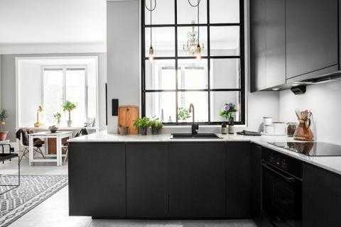 Перегородка черного цвета – нестандартный способ «принарядить» помещение. Странно, но столь мрачный цвет сумел привнести в интерьер свежесть и особый уют.