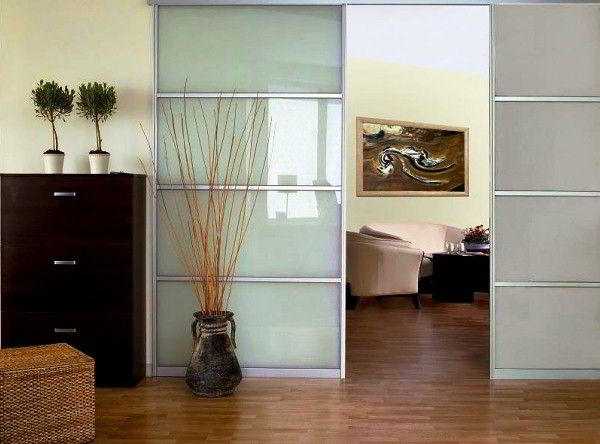 Совет: особенно эффектно будет смотреться матовая или рельефная стеклянная раздвижная перегородка в квартире.