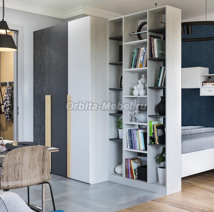 Стеллажи используют в качестве перегородок между двумя функциональными пространствами: зоной готовки и столовой группой, гостиной и рабочим местом и т.д. С помощью этой мебели можно разграничить пространство, не возводя простенков или глухих перегородок. Более того, благодаря мобильности открытого шкафа это разделение может изменяться так часто, как вам того захочется. А оформив хранение на полках разными способами (поставив туда живые цветы или яркий декор), можно расставить в интерьере стильные акценты. - Чтобы выделить комнату (например, полноценно изолировать спальню). Открытый стеллаж для этой цели используют не так часто. Основной нюанс — в плохой звукоизоляции, ведь мебель — это только визуальное разграничение площади, а для отдельной комнаты это не всегда подходит. Тем не менее, если вы хотите создать у себя дома открытое пространство и лишь намекнуть на наличие разделения по зонам, то такой вариант для этой цели подойдет.