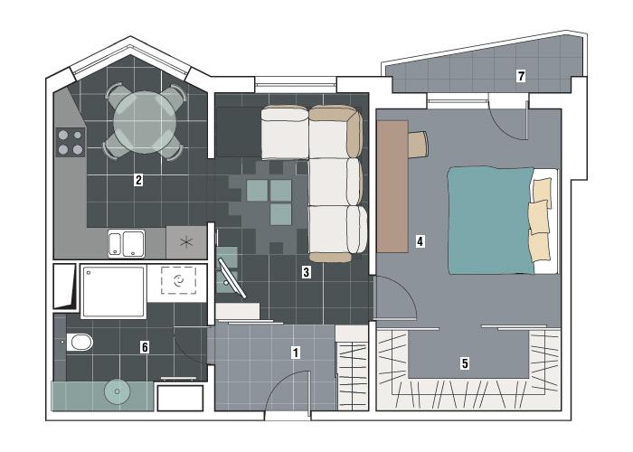 Если площадь квартиры позволяет, то лучше всего выделить в ней две зоны: гостевую и хозяйскую. Хозяйская зона – это такие комнаты, как детская, спальня и «хозяйский» санузел – все это должно быть отделено от гостевой зоны и желательно, чтобы гости туда вообще не попадали, если их туда специально не приглашали.