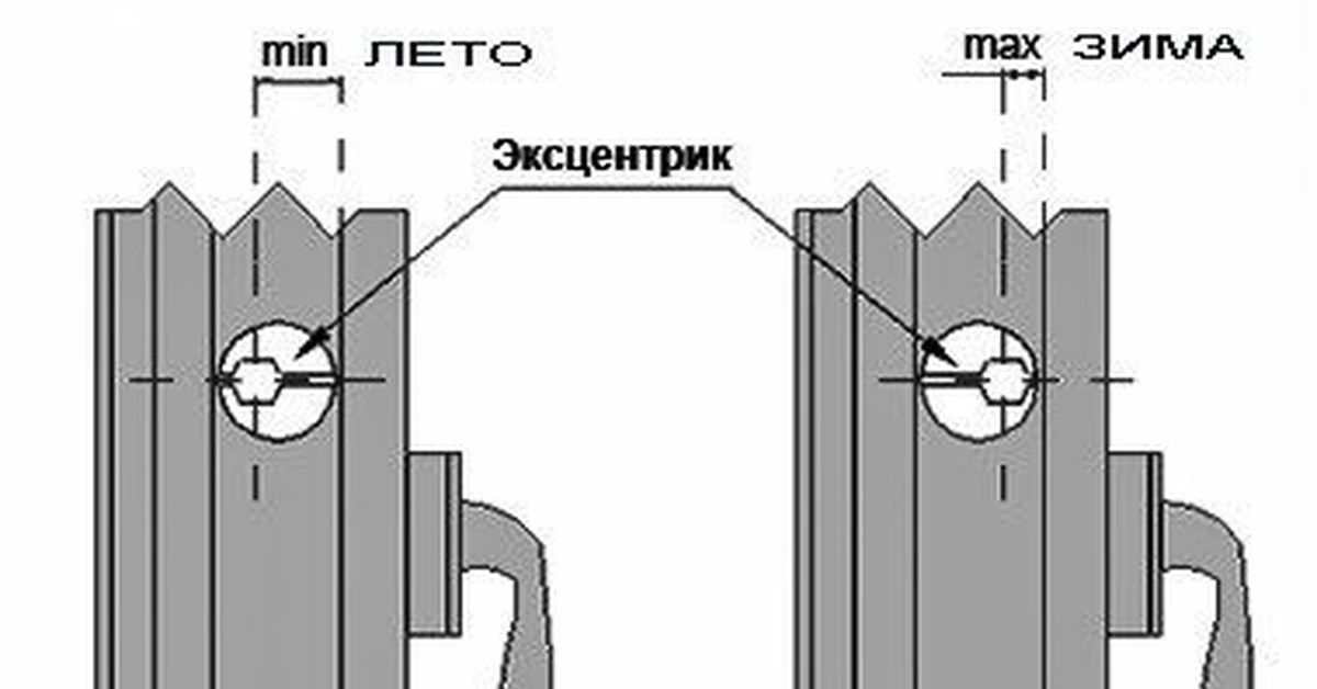 «Полулетнего» или «полузимнего» положения нет. Все эксцентрики не составит труда провернуть, так как они вращаются свободно. Но выставить их нужно только в позицию 900 по вертикали или по горизонтали, влево либо вправо.