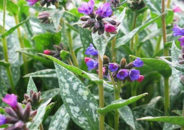- медуница (латинское название Pulmonária), невысокое растение с фиолетовыми цветками, которое вполне можно выращивать на огороде, давно известны полезные свойства медуницы, как хорошего отхаркивающего средства, также это антисептик и мочегонное средство;