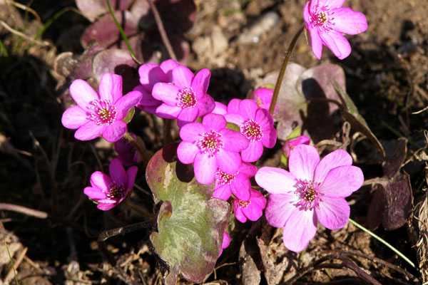 - печеночница (название на латыни Hepatica), относится к семейству лютиковых, такое название получила по форме листьев, которые напоминают в своих очертаниях печень, встречается в средней полосе России, известен также вид, который произрастает в Азии;