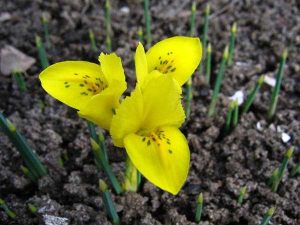 Первыми (это может быть даже конец февраля) зацветают ботанические виды, позже – в апреле – многочисленные гибриды крокусов. Лучше всего крокусы смотрятся в группе – от этого их яркие краски становятся еще выразительнее и заметнее. Можно как сочетать разные виды крокусов, так и комбинировать их с другими первоцветами.