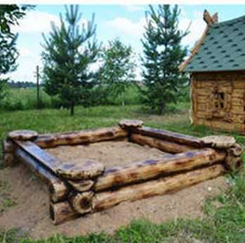 Фото возможных идейПесочница из бревен и русское фэнтези