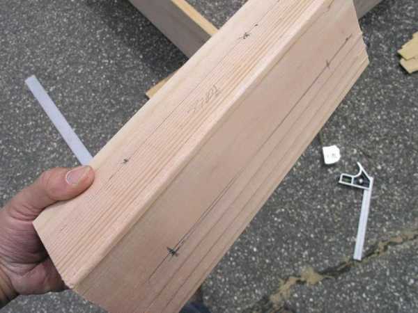 - Берем доски, предназначенные для бортов, и срезаем углы под 45`.