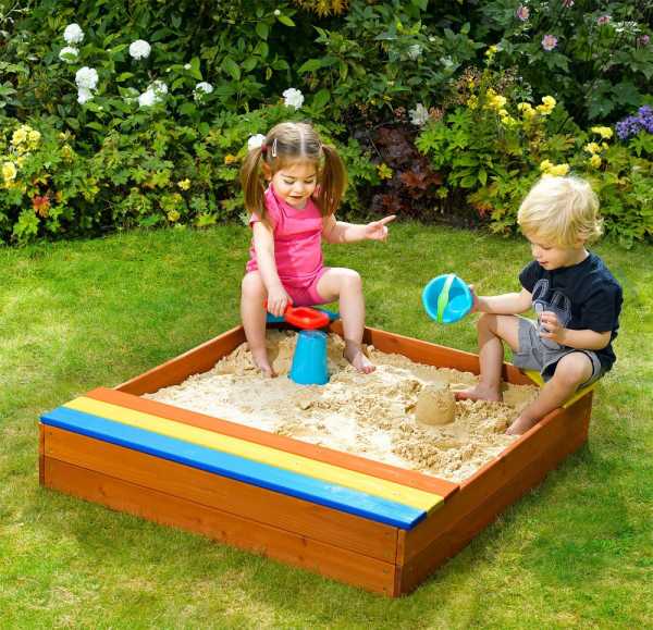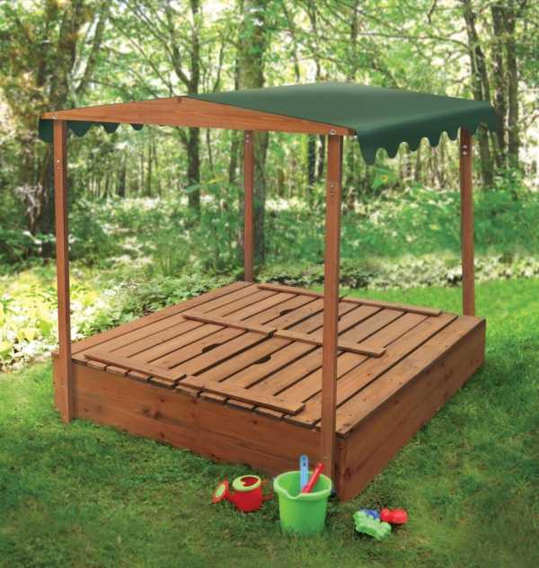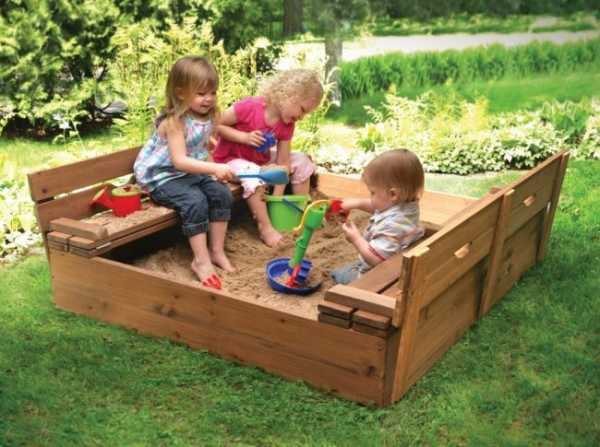 Деревянная песочница своими руками для детей на дачу: 490 фото, чертежи.
