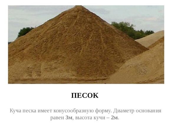 ✔ Плотность речного песка 1650 кг/м 3 , значит 1650 кг речного песка занимает 1 кубический метр объема.
