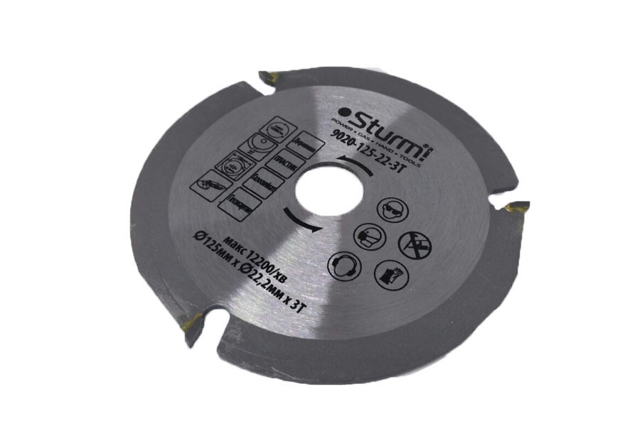 - Три зуба из карбида вольфрама обеспечивают безопасную работу с лезвием, создавая приемлемое значение радиального сопротивления при высокой частоте вращения;