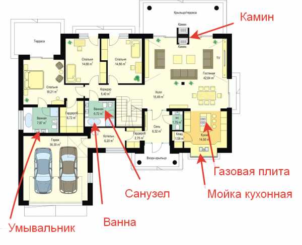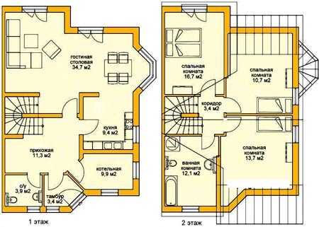 Планировка всех этажей двухэтажного коттеджа