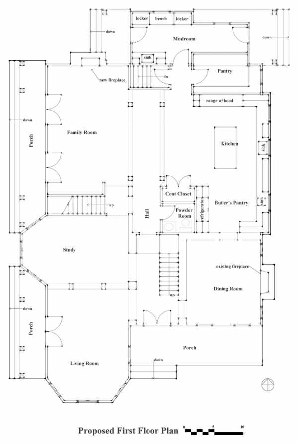 Составление поэтажного плана начинается с вычерчивания плана первого этажа.