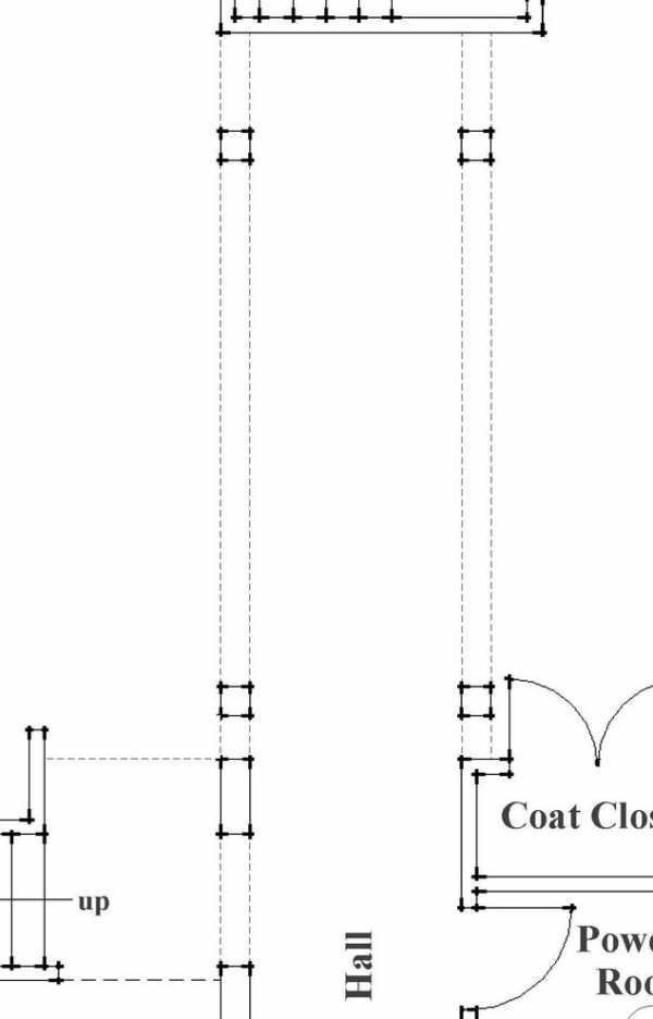 Стены как самый важный архитектурный элемент должны быть обязательно показаны на любом плане. Особенно важна их толщина, например, более тонкая, как в деревянном каркасном доме или более основательная в кирпичном или монолитном строении. Стены изображаются в виде двух параллельных линий с разрывами на тех местах, где находятся окна и двери.