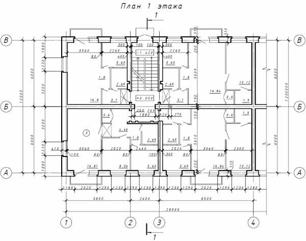 План – это изображение разреза здания, рассеченного мнимой горизонтальной плоскостью, проходящей на уровне оконных и дверных проемов каждого этажа (рис. 1).