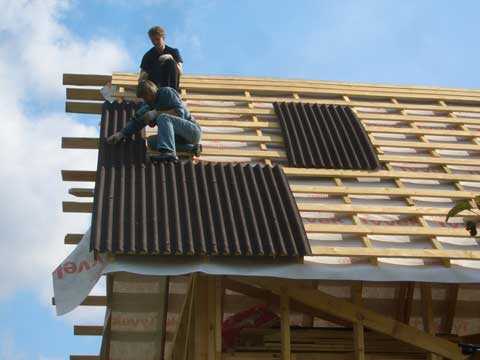 Π‘Ρ Π΅ΠΌΠ° ΠΌΠΎΠ½ΡΠ°ΠΆΠ° ΠΏΠ»ΠΎΡΠΊΠΈΡ Π»ΠΈΡΡΠΎΠ² Π°Π½Π°Π»ΠΎΠ³ΠΈΡΠ½Π° ΠΌΠΎΠ½ΡΠ°ΠΆΡ Π²ΠΎΠ»Π½ΠΎΠ²ΠΎΠ³ΠΎ ΡΠΈΡΠ΅ΡΠ°, Π½ΠΎ ΡΠΊΠ»Π°Π΄ΠΊΡ ΠΏΠΎΠΊΡΡΡΠΈΡ ΡΠ°ΠΊΠΎΠ³ΠΎ ΡΠΈΠΏΠ° Π²ΠΎΠ·ΠΌΠΎΠΆΠ½ΠΎ ΠΎΡΡΡΠ΅ΡΡΠ²Π»ΡΡΡ ΡΠΎΠ»ΡΠΊΠΎ Π½Π° ΠΊΡΠΎΠ²Π»ΡΡ Ρ ΡΠ³Π»ΠΎΠΌ ΡΠΊΠ»ΠΎΠ½Π° Π½Π΅ ΠΌΠ΅Π½Π΅Π΅ 18 Π³ΡΠ°Π΄ΡΡΠΎΠ². Π£ΠΊΠ»Π°Π΄ΠΊΠ° ΠΎΡΡΡΠ΅ΡΡΠ²Π»ΡΠ΅ΡΡΡ Π½Π° ΡΠΏΠ»ΠΎΡΠ½ΡΡ ΠΎΠ±ΡΠ΅ΡΠ΅ΡΠΊΡ ΡΠ»Π΅Π²Π° Π½Π°ΠΏΡΠ°Π²ΠΎ, ΠΈ ΡΠ½ΠΈΠ·Ρ Π²Π²Π΅ΡΡ . ΠΠΈΡΡΡ ΡΠΊΠ»Π°Π΄ΡΠ²Π°ΡΡ ΡΠ°ΠΊ, ΡΡΠΎΠ±Ρ Π½Π°Ρ Π»Π΅ΡΡ ΠΎΠΊΠ°Π·Π°Π»ΡΡ Π½Π° ΠΏΠΎΠ΄Π²Π΅ΡΠ½ΡΡΠΎΠΉ ΡΡΠΎΡΠΎΠ½Π΅. ΠΠ° ΠΎΠ±ΡΠ΅ΡΠ΅ΡΠΊΡ, ΠΏΡΠ΅Π΄Π²Π°ΡΠΈΡΠ΅Π»ΡΠ½ΠΎ, Π½Π°Π½ΠΎΡΠΈΡΡΡ ΡΠ°Π·ΠΌΠ΅ΡΠΊΠ°-ΡΠ΅ΡΠΊΠ°. ΠΡΠ΅ ΠΎΠ΄ΠΈΠ½ Π²Π°ΠΆΠ½ΡΠΉ Π½ΡΠ°Π½Ρ: Π½Π΅ΡΠ΅ΡΠ½ΡΠΉ ΡΡΠ΄ Π½Π°ΡΠΈΠ½Π°ΡΡ ΡΠ°ΡΠΊΠ»Π°Π΄ΡΠ²Π°ΡΡ Ρ ΡΠ΅Π»ΠΎΠΉ ΡΠΈΡΠ΅ΡΠΈΠ½Ρ, Π° ΡΠ΅ΡΠ½ΡΠΉ β Ρ Π΅Π΅ ΠΏΠΎΠ»ΠΎΠ²ΠΈΠ½Ρ. ΠΡΠ° ΡΠ΅Ρ Π½ΠΎΠ»ΠΎΠ³ΠΈΡ ΠΏΠΎΠ·Π²ΠΎΠ»ΡΠ΅Ρ ΠΈΠ·Π±Π΅Π³Π°ΡΡ ΡΠΏΠ»ΠΎΡΠ½ΠΎΠ³ΠΎ ΡΡΡΠΊΠ° Π½Π° ΠΊΡΠΎΠ²Π»Π΅. ΠΠ° ΠΊΠΎΠ½ΡΠΊΠΈ ΡΡΡΠ°Π½Π°Π²Π»ΠΈΠ²Π°ΡΡ ΡΠΏΠ΅ΡΠΈΠ°Π»ΡΠ½ΡΠ΅ ΡΠ»Π΅ΠΌΠ΅Π½ΡΡ ΠΈΠ· Π°ΡΠ±Π΅ΡΡΠΎΡΠ΅ΠΌΠ΅Π½ΡΠ°. ΠΠΎΠ΄ ΡΡΠΈ ΡΠ»Π΅ΠΌΠ΅Π½ΡΡ ΠΏΡΠ΅Π΄Π²Π°ΡΠΈΡΠ΅Π»ΡΠ½ΠΎ ΡΠΊΠ»Π°Π΄ΡΠ²Π°Π΅ΡΡΡ ΡΡΠ±Π΅ΡΠΎΠΈΠ΄. ΠΠ½Π΄ΠΎΠ²Ρ ΠΈΠ·Π³ΠΎΡΠ°Π²Π»ΠΈΠ²Π°ΡΡΡΡ ΠΈΠ· ΠΎΡΠΈΠ½ΠΊΠΎΠ²ΠΊΠΈ.