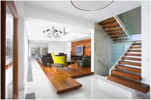 Наиболее популярные лестничные конструкции для гостиной: