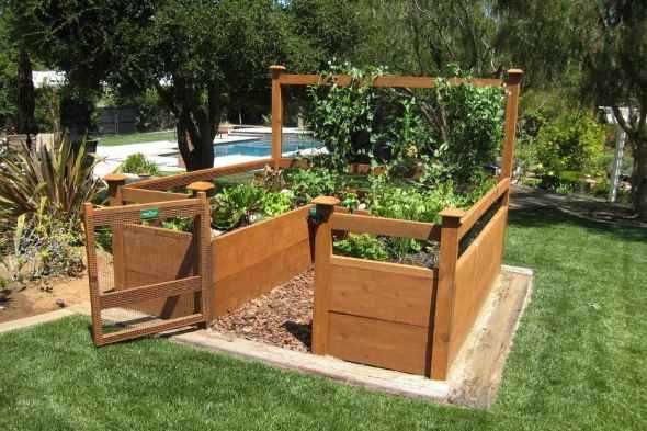 Также достаточно распространенный вариант грядок, имеющий ряд преимуществ перед простыми насыпными грядами без бортиков. Обратите внимание, что в любом случае на дно каждого короба рекомендуется монтировать мелкоячеистую сетку, чтобы кроты не повредили урожай.