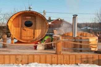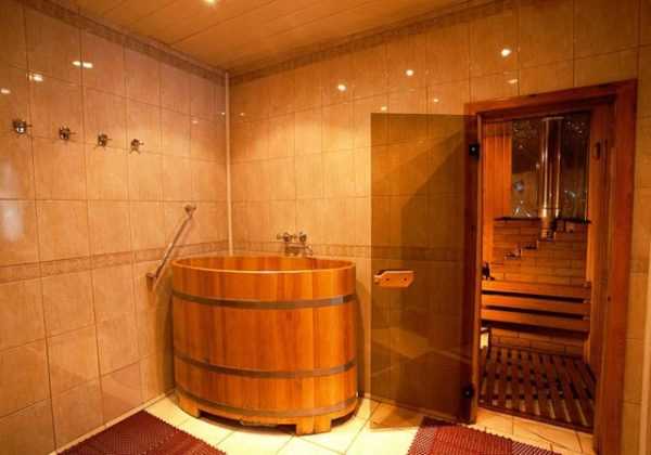 - Большей площади потребуется размещение спа-оборудования. Достаточно распространенными являются бочки хамам, а также массажные столы Их можно разместить как в помывочной, так и в комнате отдыха;