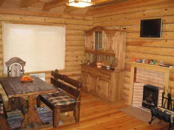 - оконные проемы, даже в комнате отдыха, имеют более декоративные, нежели осветительные функции, поэтому их прорезают небольшого размера и декорируют ажурными наличниками;