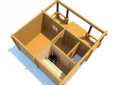 Такая баня имеет довольно удобную и компактную планировку. Обычно бани подобных размеров обустраиваются парилкой, душевой и комнатой отдыха. Душевую и парилку желательно спланировать одинаковых размеров. В таком случае посетить парную смогут сразу несколько человек. Это достаточно актуально для большой семьи.