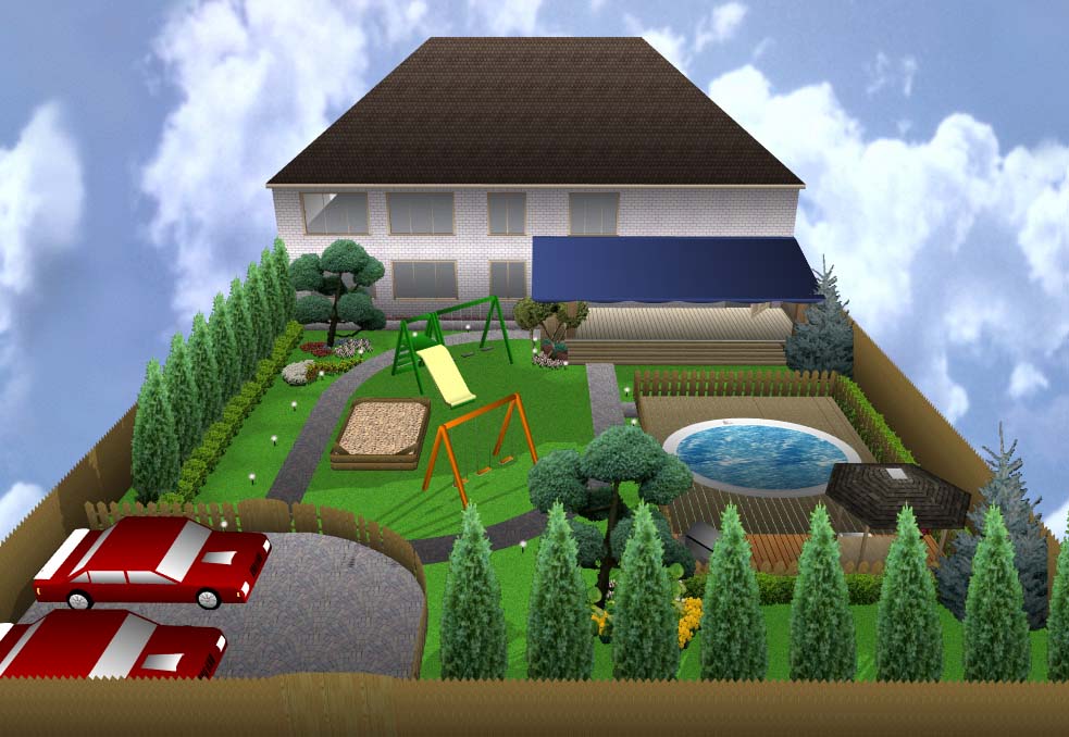 Лучше всего производить комплексную планировку участка в специальной программе, то есть учитывать и фасад здания и различные насаждения для того, чтобы получить полностью гармоничную картину.