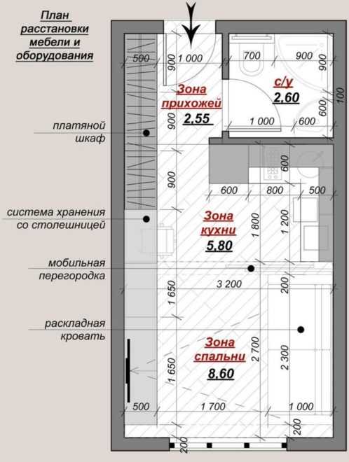 Дизайн интерьера, планировка и зонирование квартиры-студии