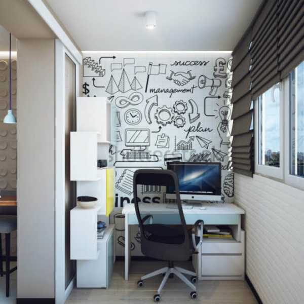 Интерьер рабочего пространства на лоджии может быть очень стильным