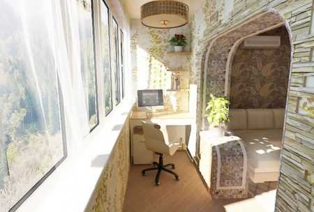 Утеплённая и обустроенная лоджия подходит для создания рабочей зоны. Семьям с детьми стоит оборудовать здесь игровую комнату. Уместно полное совмещение лоджии и жилой комнаты. Широкое пространство окна лоджии позволяет разделить помещение на две полноценные комнаты. В любом случае требуется тщательное утепление, отделка и обустройство балкона.
