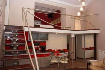 Некоторые застройщики многоквартирных домов предлагают к продаже квартиры на верхних этажах, потолки которых позволяют сделать два полноценных этажа. При такой планировке наиболее приемлемым вариантом выступает гостевая зона и кухня на нижнем этаже, выполненная в виде студии, а также размещение санузла. Другая половина квартиры включает спальную зону. В зависимости от площади помещения и количества проживающих людей комнат на втором ярусе может быть несколько.