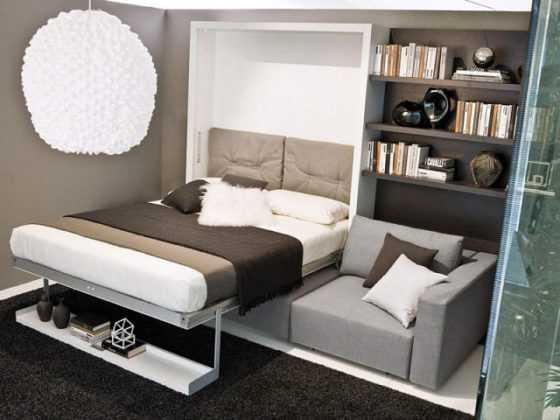 Ещё одно немаловажное правило подбора мебели для свободной планировки в малогабаритных квартирах — функциональность. Любой предмет должен быть полезен. Журнальный столик трансформируется в большой обеденный стол. Диван может использоваться в качестве кровати. Встроенный шкаф при необходимости включает в себя специальные приспособления для возможности ежедневной эксплуатации самых дальних участков.