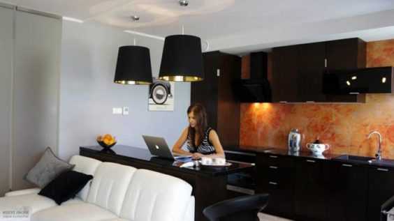 Обустройство квартиры-студии начинается с планировки. Разделение всех необходимых зон обеспечивает удобство. После этого разрабатывается дизайн-проект, в котором учитывается оформление каждой зоны. При этом одним из основных помещений является кухня. Пространство оформляется практичными, компактными и красивыми деталями. Для этого помещения оптимально подходят такие стили, как минимализм, хай-тек, прованс, авангард. Визуально увеличить пространство позволяют светлые оттенки, а яркие акценты делают обстановку уютной и стильной.
