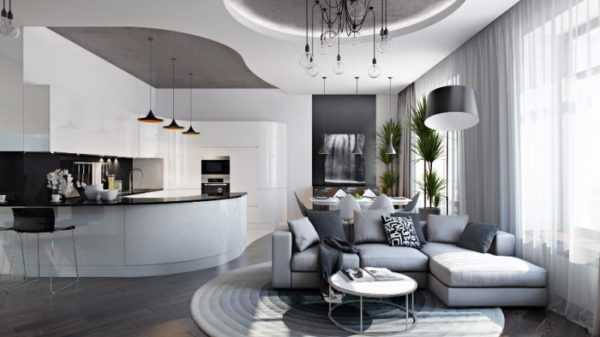 Сегодня вновь появилась мода на просторные помещения, где зоны отделяются не стенами, а фактурой отделочных материалов, цветом или лёгкими перегородками. Квартиры-студии стали престижным и дорогостоящим жильём. Дизайнеры получили возможность осуществлять свои фантазии по планировке и организации больших пространств, где можно применять различные комбинации порой несовместимых вещей.