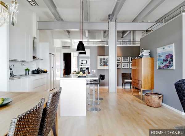 Помещения в двухуровневых студиях следует решать в едином стиле