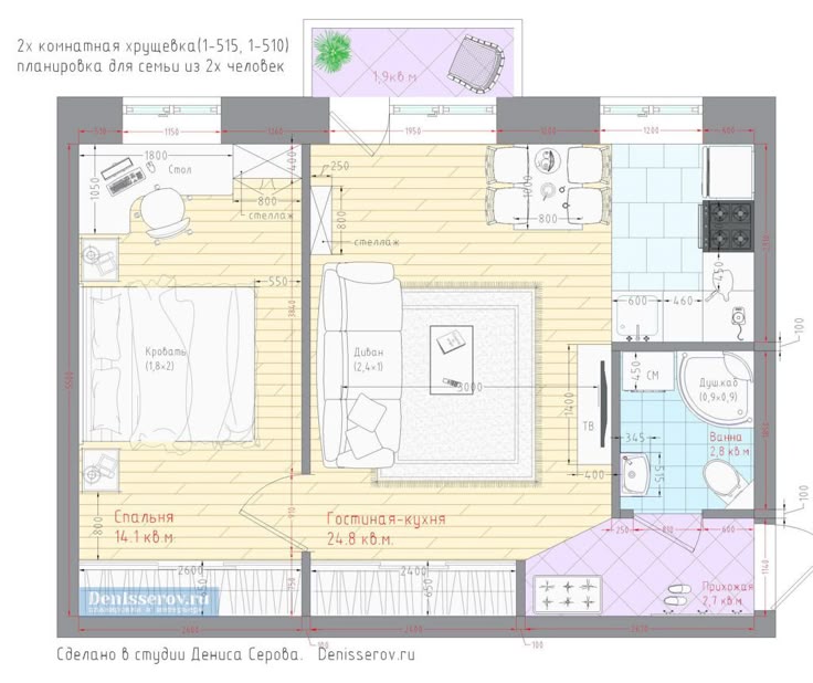 Планировка п55 двухкомнатная