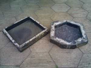 Подобного типа форма для тротуарной плитки изготовление своими руками заготовок упрощает мало. Тут также потребуется использование подставок и специфических обустроенных мест для сушки. На заполненные емкости ничто не должно давить. Для того чтобы бетон не залип в форме, использовать ее нужно только чистой и выдерживать бетонный раствор в ней как минимум двое суток, то есть, до полного высыхания.