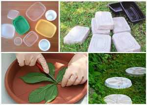Для изготовления тротуарной плитки подойдут обычные пластиковые контейнеры и другие емкости, используемые в бытуЕсли нет времени, желания, навыков работы с деревом, металлом, пластиком или силиконом, можно использовать самый простой и дешевый вариант изготовления форм для тротуарной плитки. В качестве подручных материалов можно использовать пластиковые контейнеры для пищевых продуктов. Контейнеры нужны одинакового размера, их форма и будет прототипом будущей плитки.