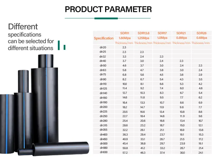 Согласно старому ГОСТ 22689.1-89 существует всего три типоразмера, которые определяют диаметры полиэтиленовых труб — 50, 90 и 110 мм. В 2014 году межгосударственным стандартом для стран СНГ (ГОСТ 22689-2014) ассортимент безнапорных канализационных трубопроводов из полиэтилена был расширен до 14 типоразмеров от 32 до 315 мм.