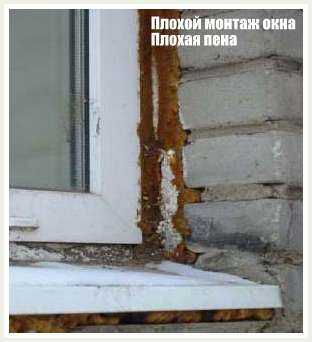 — некачественная заделка монтажной пеной швов между стеклопакетом и стеной;
