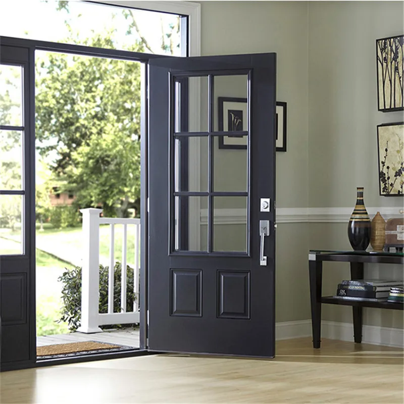 Кроме того, в современных частных домах входные двери делаются пошире – это необходимо и удобно как с точки зрения заноса внутрь строительных материалов в случае проведения отделочных работ, так и с позиций перемещения внутрь помещений крупногабаритной мебели. Поэтому металлические входные двери делают несимметричными и двухстворчатыми. Малая половинка – глухая, а в большей как раз и «прорезается» застекленное, тонированное и забранное решеткой оконце.