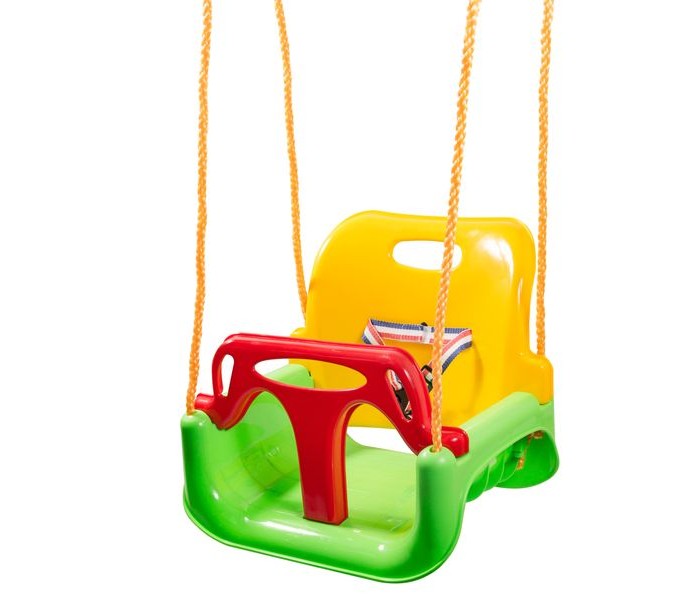 и ремни, чтобы удерживать вашего ребенка на месте, это очень безопасно! Позже перекладину и ремни можно переместить на заднюю часть качелей, чтобы малыши могли свободно качаться. Качели изготовлены из пластика и снабжены веревками. Это разумная цена в $ 26,99.