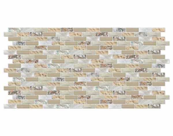 Листовые панели под кафель — образец отделочных материалов, имитирующих плитку из керамики. Размер изделий — 122х244 см. Крепятся к стене они без предварительно сделанной обрешетки.