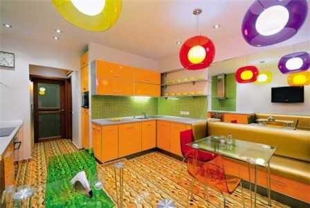 В большинстве кухонь встречается натуральная кафельная плитка. Но это не всегда возможно по некоторым причинам. Заменить керамику или кафель способна плитка напольная из ПВХ. Она имеет высокую плотность, большой выбор расцветок. Панели украшают интерьер кухни, делают помещение комфортным. Облицовка под камень хорошо смотрится на полу. Ее монтирую в разных зонах кухни.