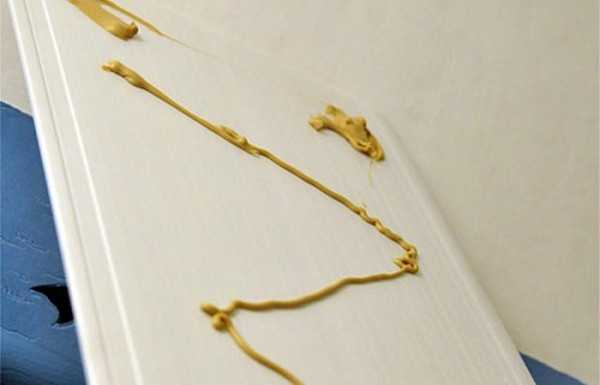 Если вы используете жидкие гвозди, наносить их следует точечно, для использования краски подходит метод нанесения линий по границам материала.