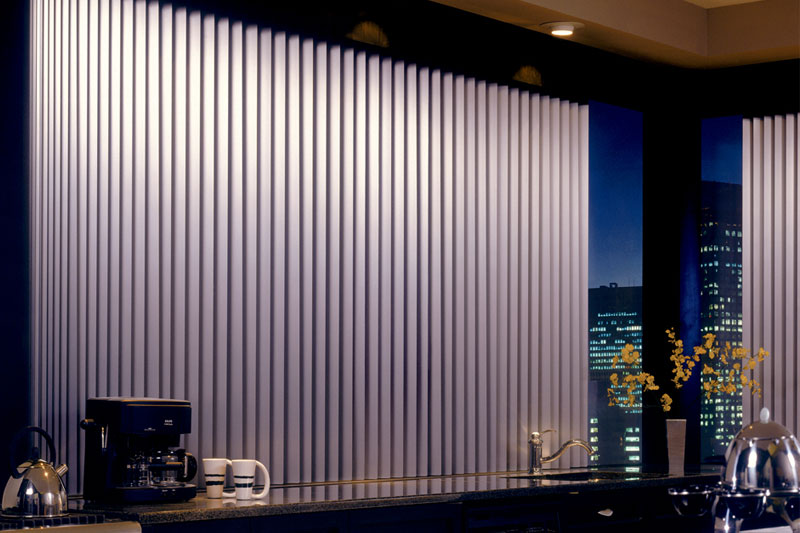 Данный вид жалюзи рекомендуется устанавливать, если хотите визуально увеличить высоту помещения. Материал изготовления жалюзи может быть тканевым, пластиковым, алюминиевым, деревянным. Длина тоже изготавливается до подоконника либо прикрывает часть окна. Ламели вертикальных жалюзи могут иметь рисунки, а срез может быть не только прямым, но и разной формы.