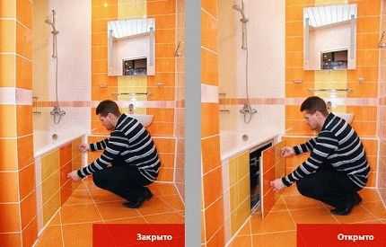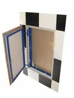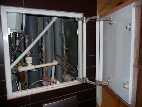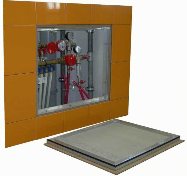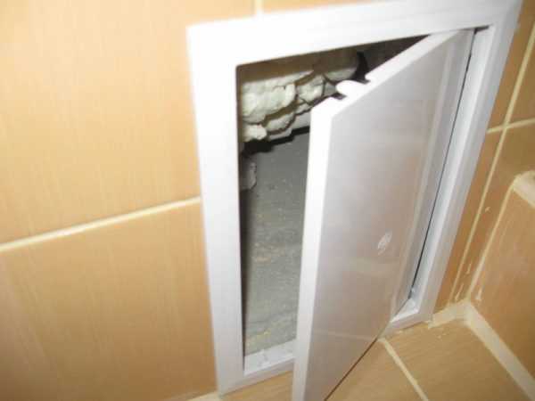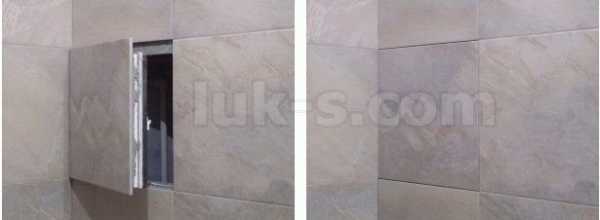 Важно! Люки изготавливают из стали, пластика или дерева, обработанного антисептическим и влагоотталкивающим составом. Чтобы дверка оставалась незаметной и сливалась со стеной, на нее приклеивают керамическую плитку или другой материал, используемый для отделки помещения.