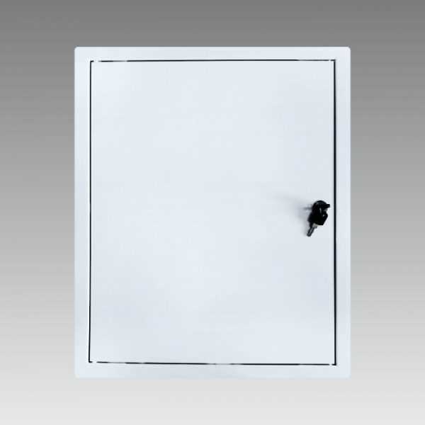 Ревизионные панели представляют собой пластиковую раму с дверцей, которая крепится на шарнирах, закрывается на роликово-клиновые замки и открывается с помощью ручки или присоски.