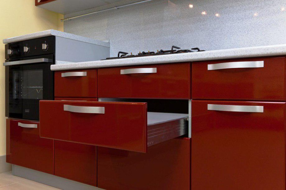 - В механической прочности побеждают пленочные покрытия фасадов. МДФ-панели, покрытые ПВХ-пленкой, лучше других выдерживают влажную среду и не бледнеют со временем, и их сложнее поцарапать. А эмаль в свою очередь, хотя и является прочным материалом, больше подвержена повреждениям при механическом воздействии.