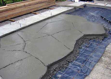 - Уложенное полотно заливают слоем цементного раствора, выравнивают, оберегая пленку от случайных повреждений.