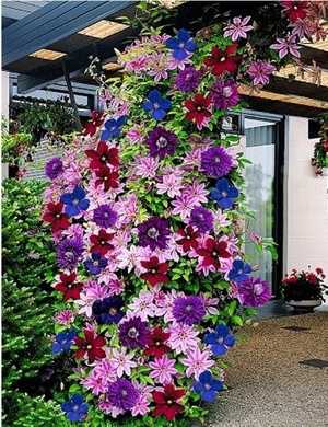 - Вьющиеся цветы растут вертикально, поэтому не требуют много места. Для посадки одного многолетника достаточно клочка земли размером 40х60 см.