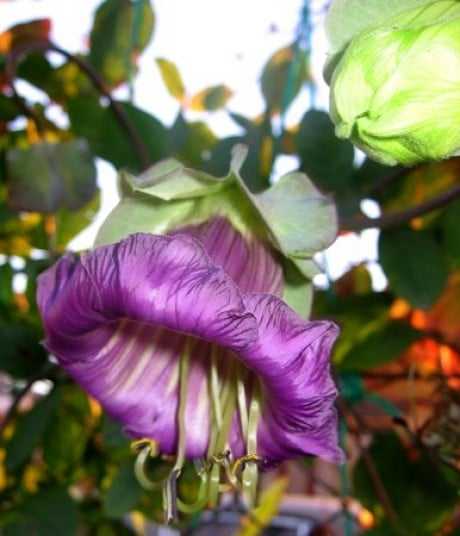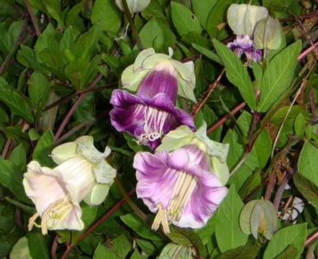 Кобея украсит постройку цветами-колокольчикамиКрупные цветки в форме колокольчиков имеют приятный кремовый, фиолетовый или розовый оттенок. Цветение у Кобеи длительное – до 4 месяцев, поэтому наслаждаться прекрасным видом можно будет до самых заморозков.